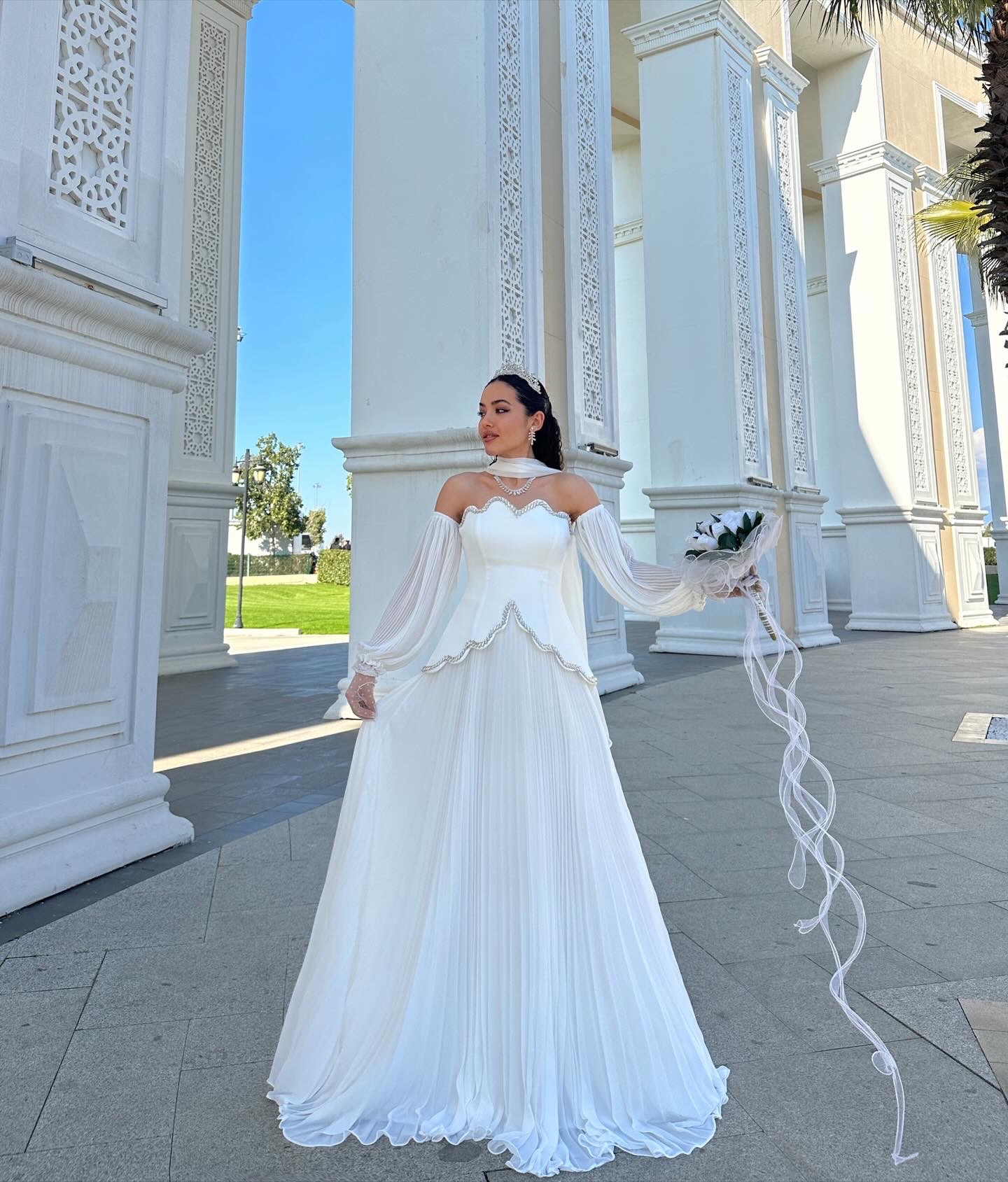 BEYAZ OLİVA TAŞLI TASARIM ABİYE