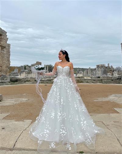 BEYAZ VİCTORİA TASARIM TAŞLI ABİYE