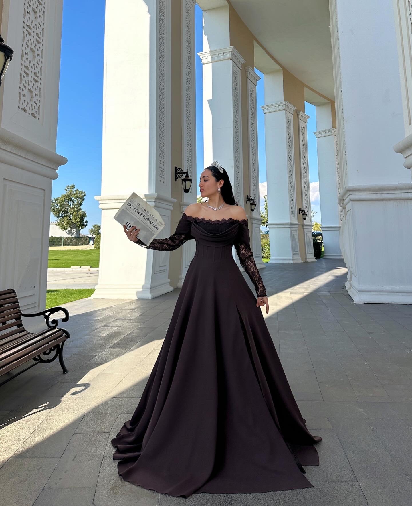 KAHVERENGİ DANTELLİ TASARIM ROSA ABİYE