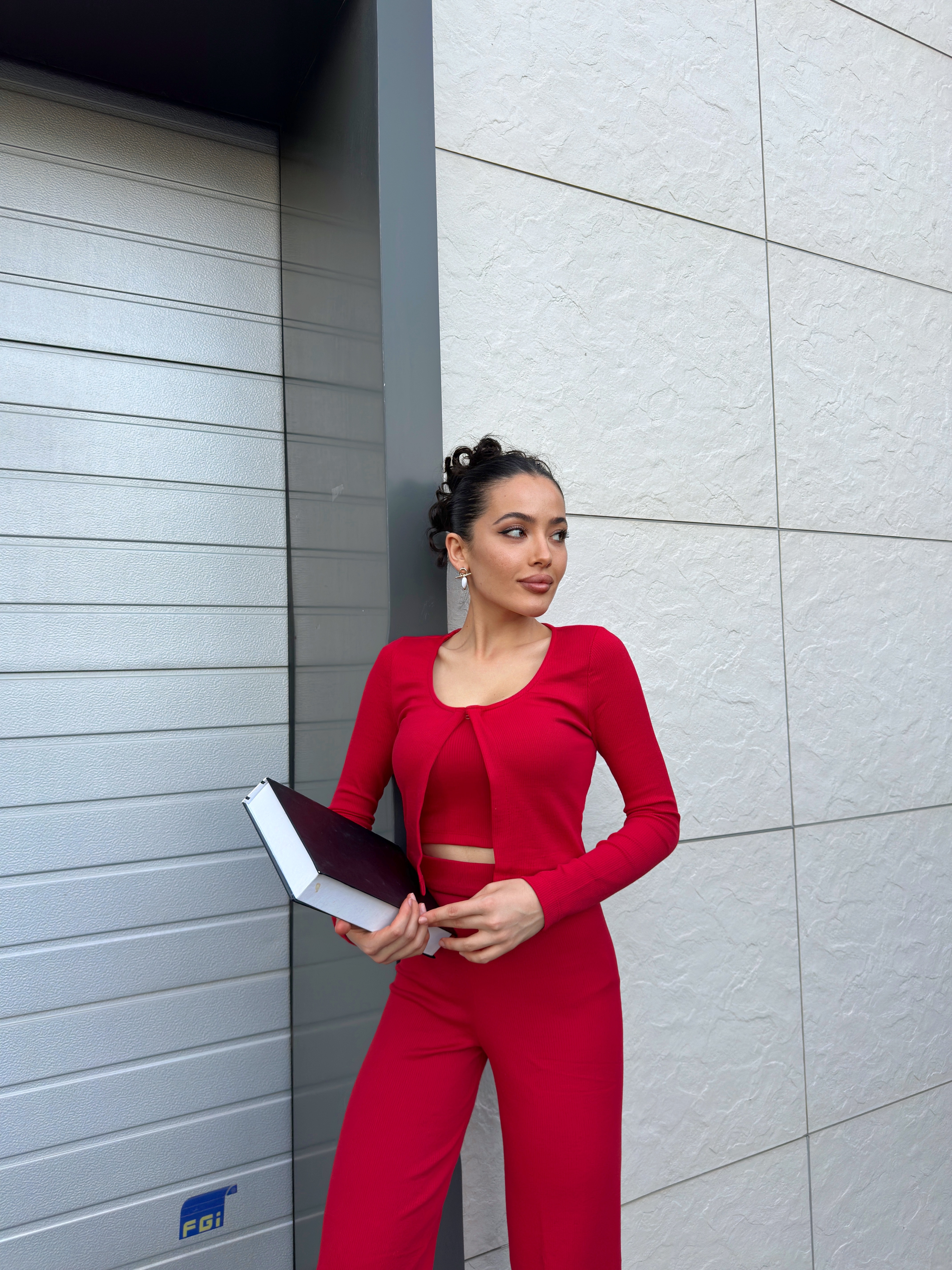 KIRMIZI PAMUKLU ÜÇLÜ TAKIM