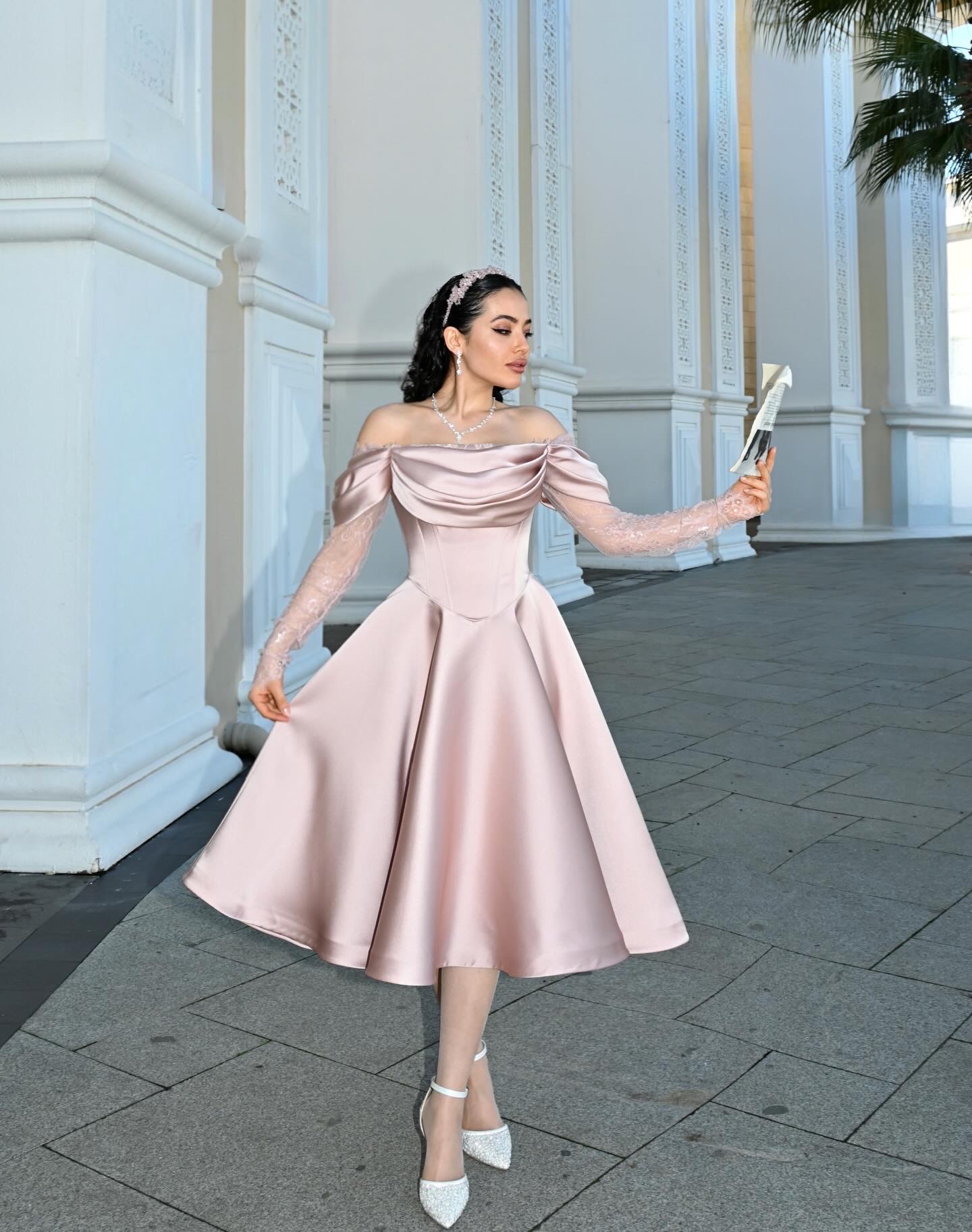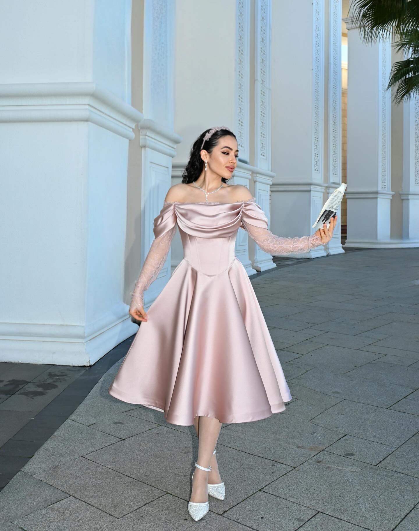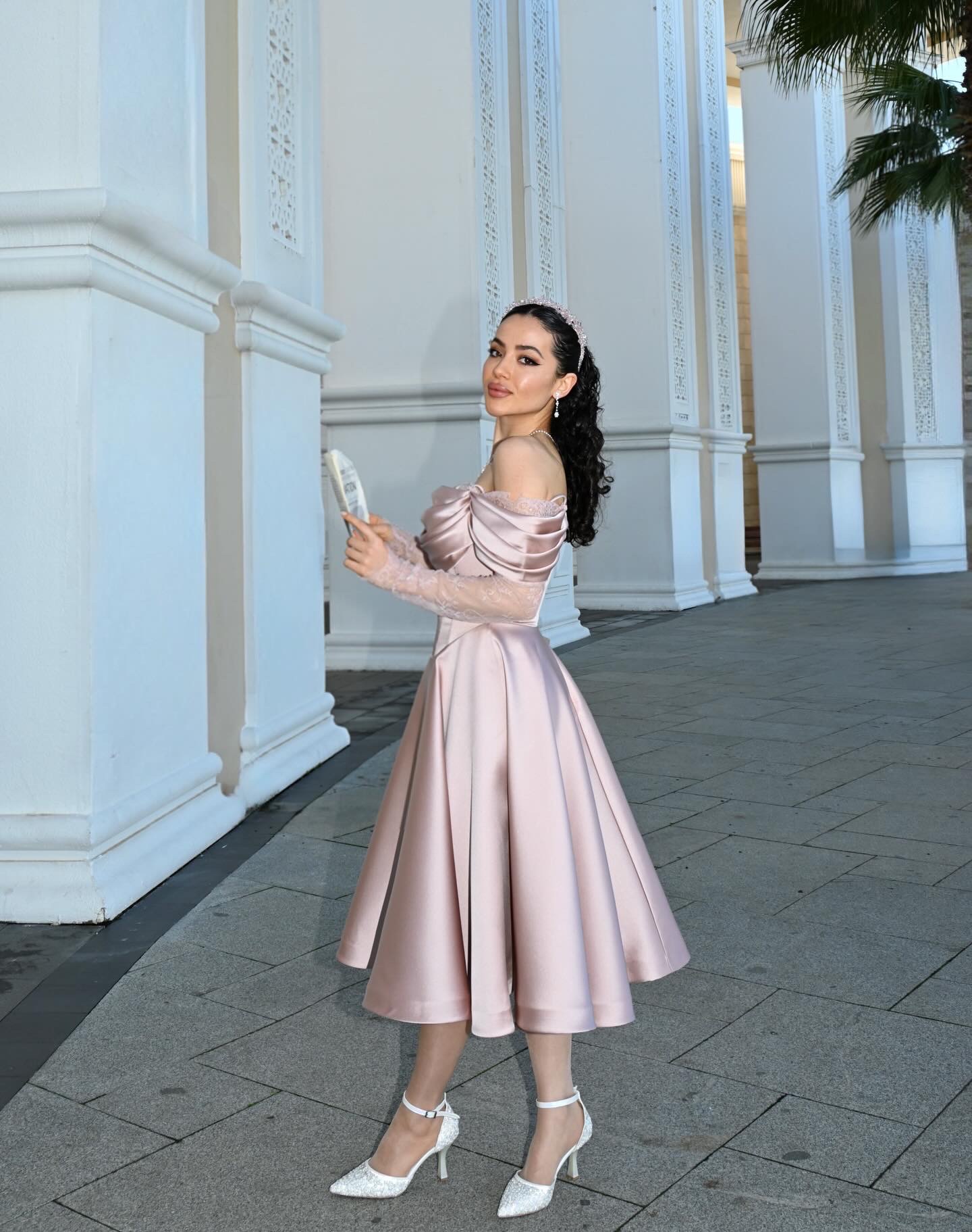 PUDRA SOFİA SATEN DANTELLİ ABİYE