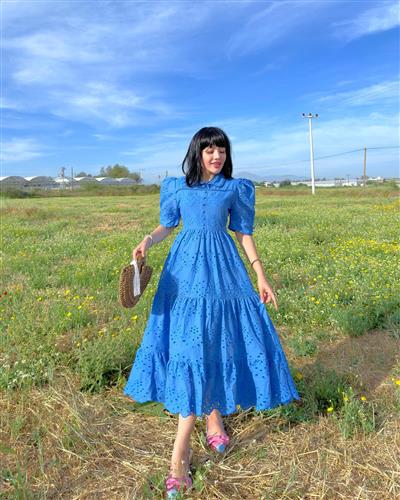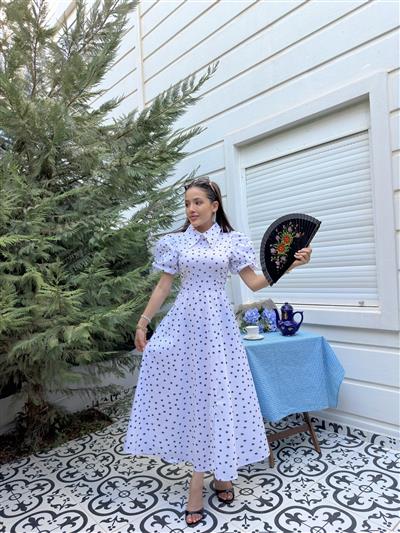 MAVİ PUANTİYELİ DÜĞMELİ POPLİN ELBİSE