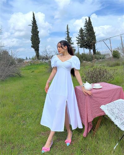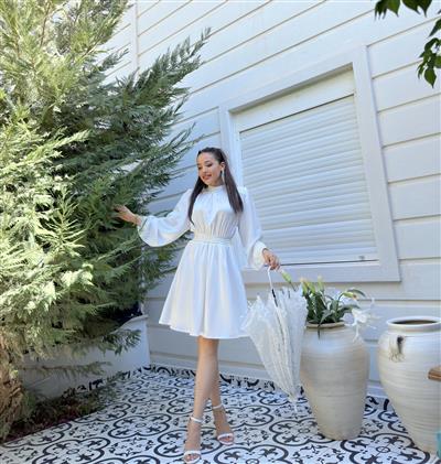 BEYAZ FİSTO MADONNA YAKA ELBİSE
