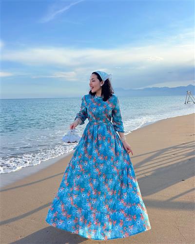 MAVİ KUŞAKLI MAXİ BOY ELBİSE