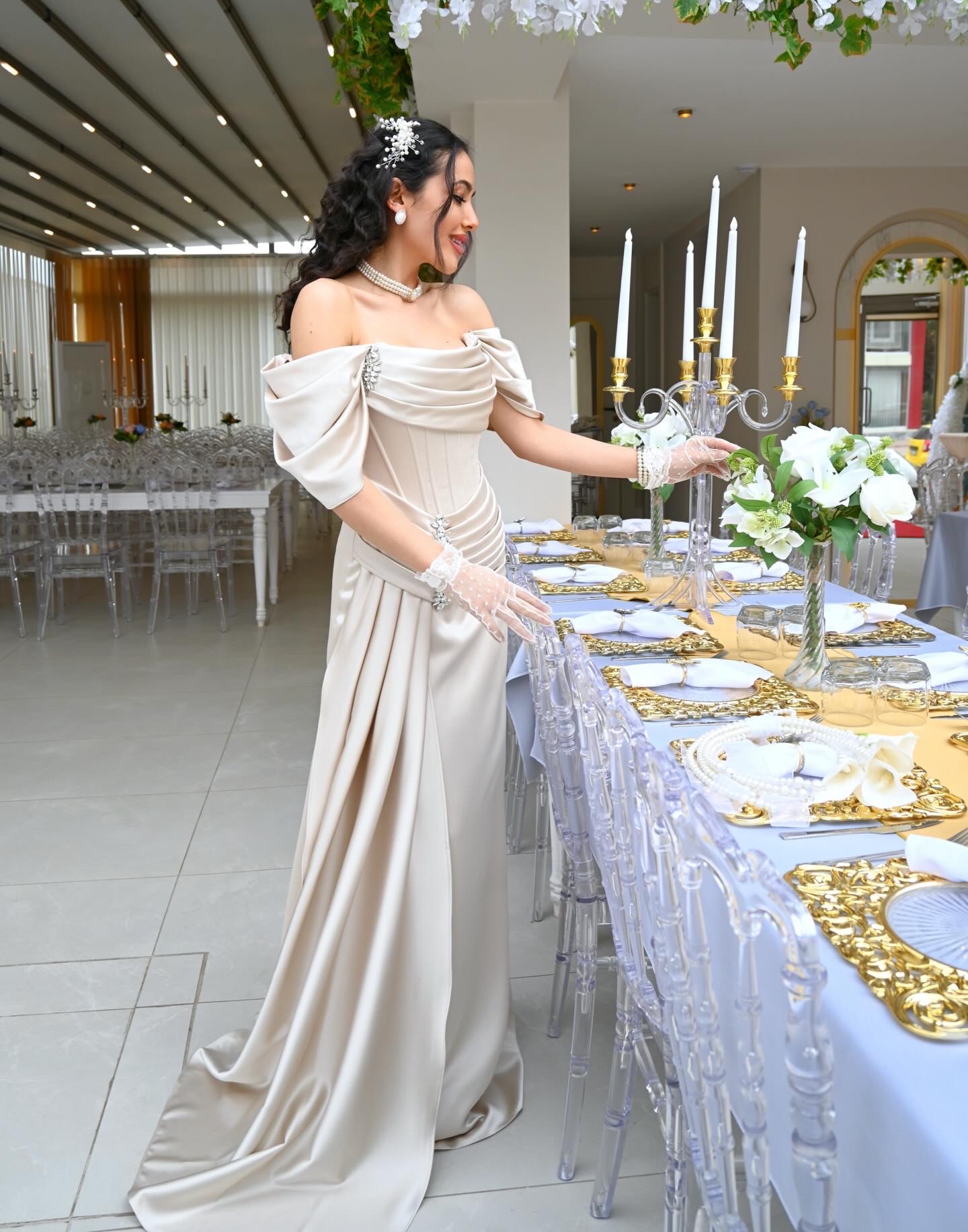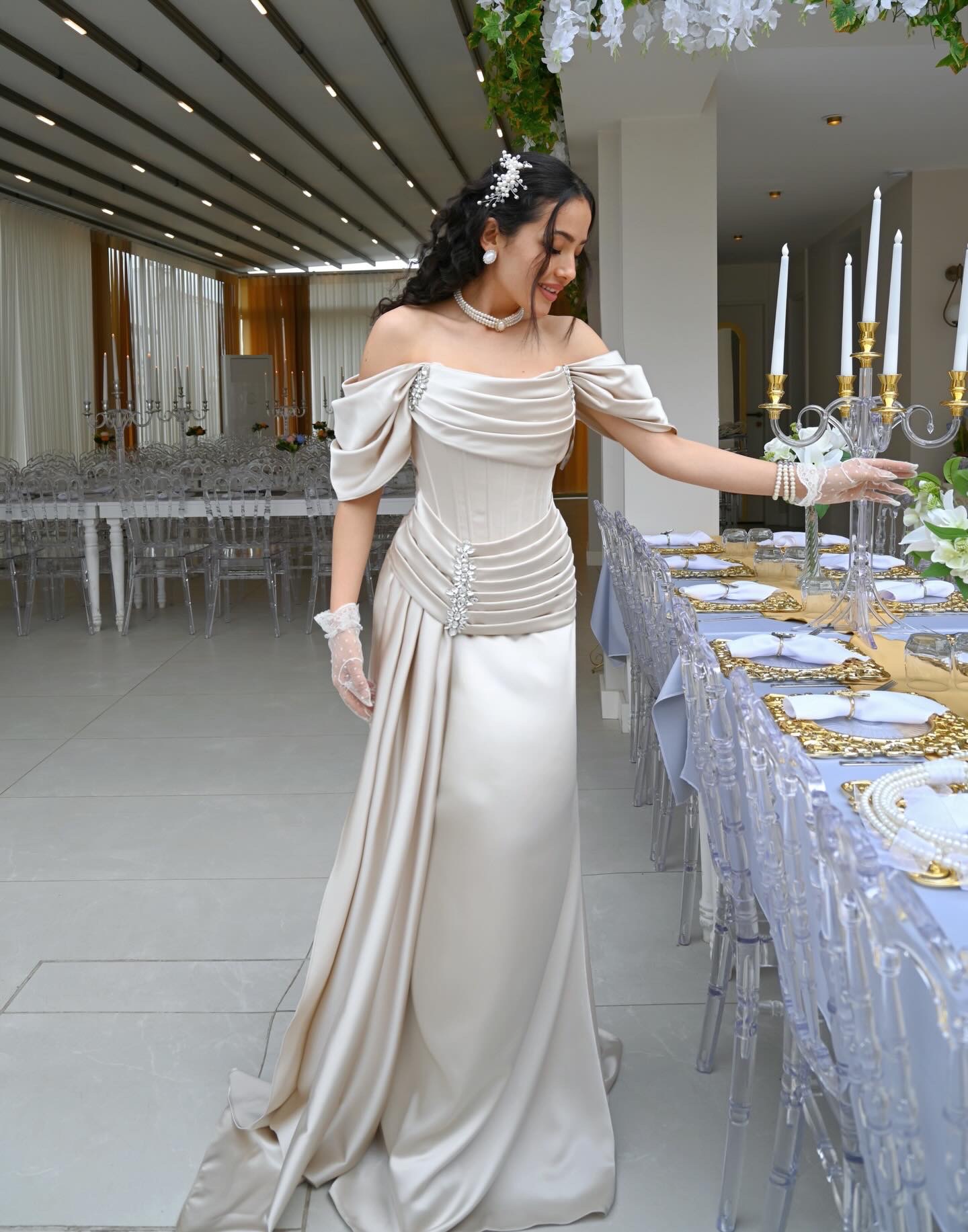ARİA TAŞ RENK SATEN DRESS
