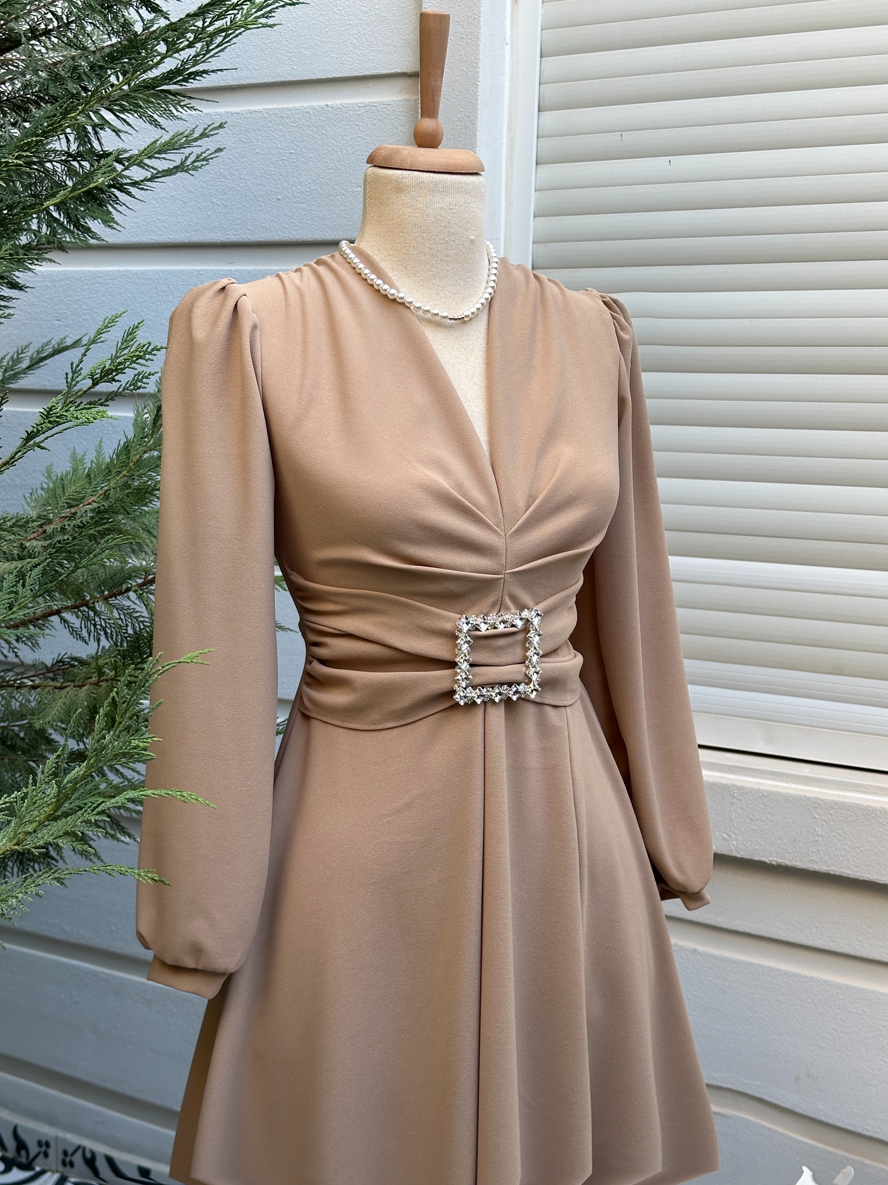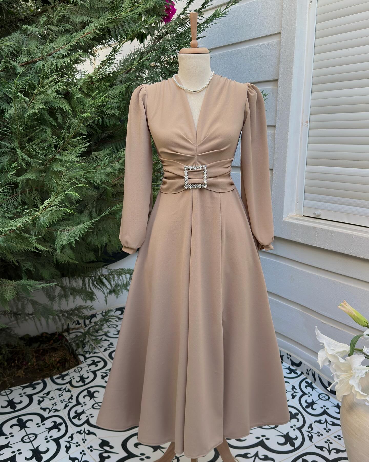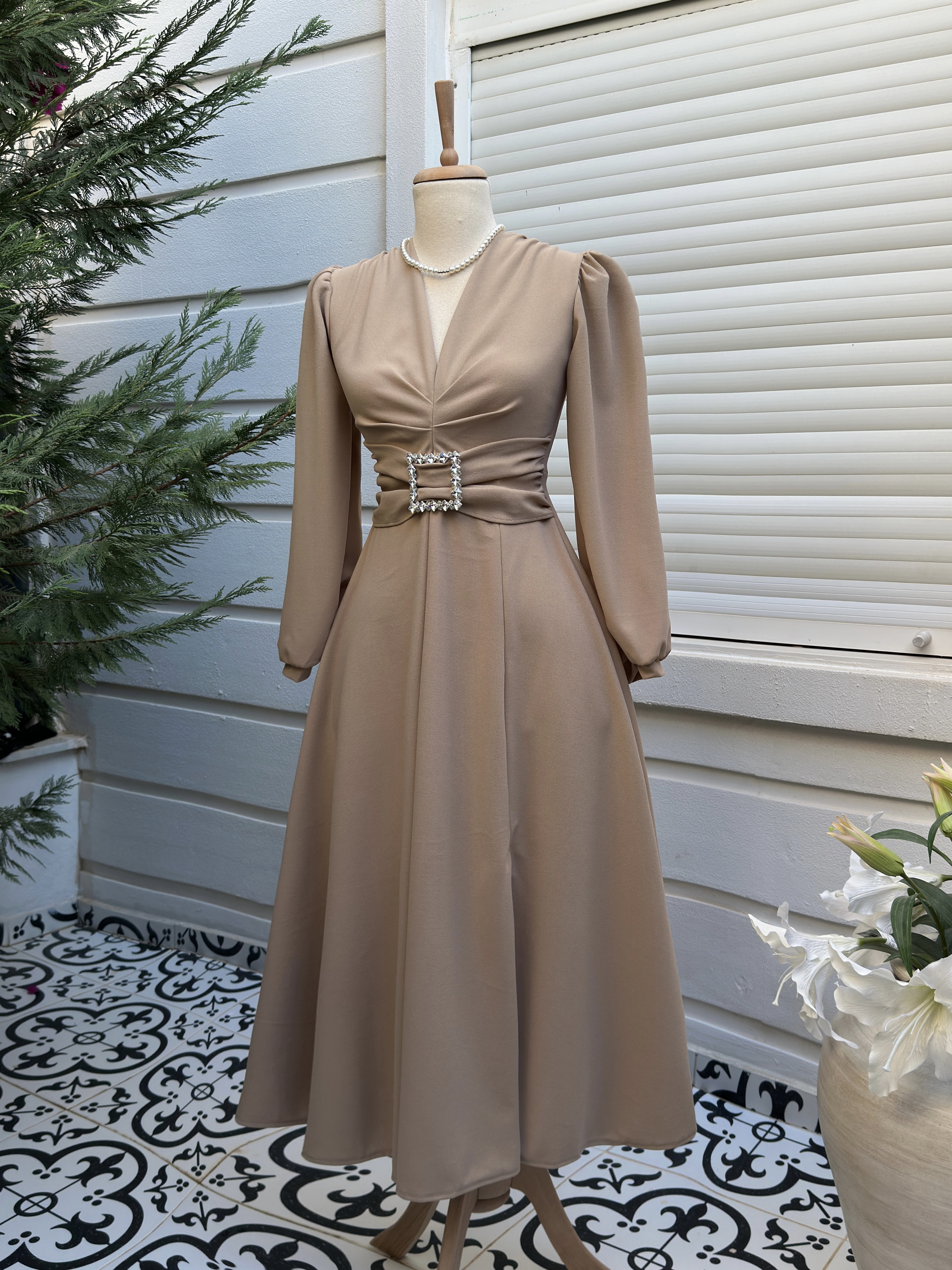 BEJ TAŞ TOKALI ABİYE ELBİSE