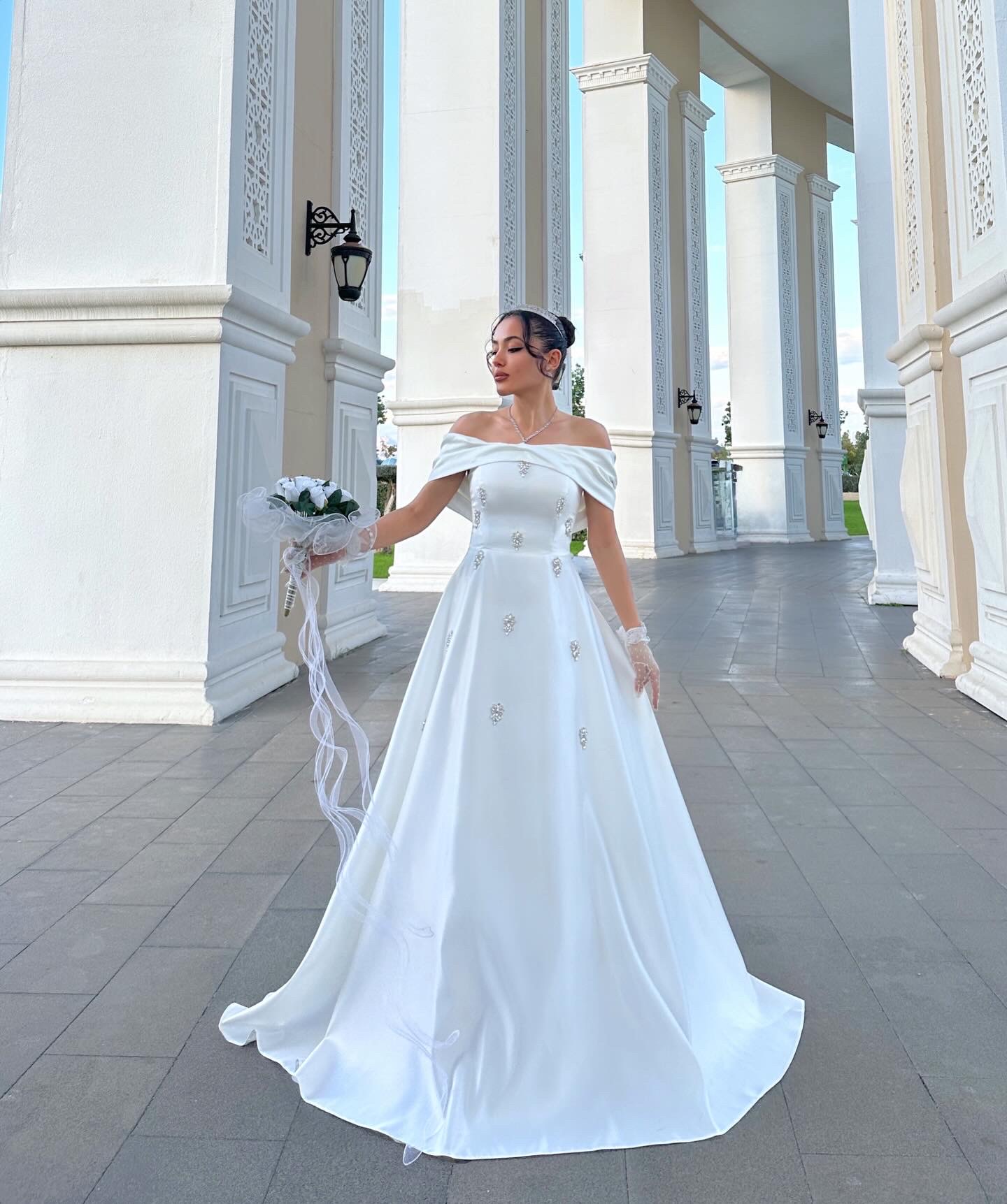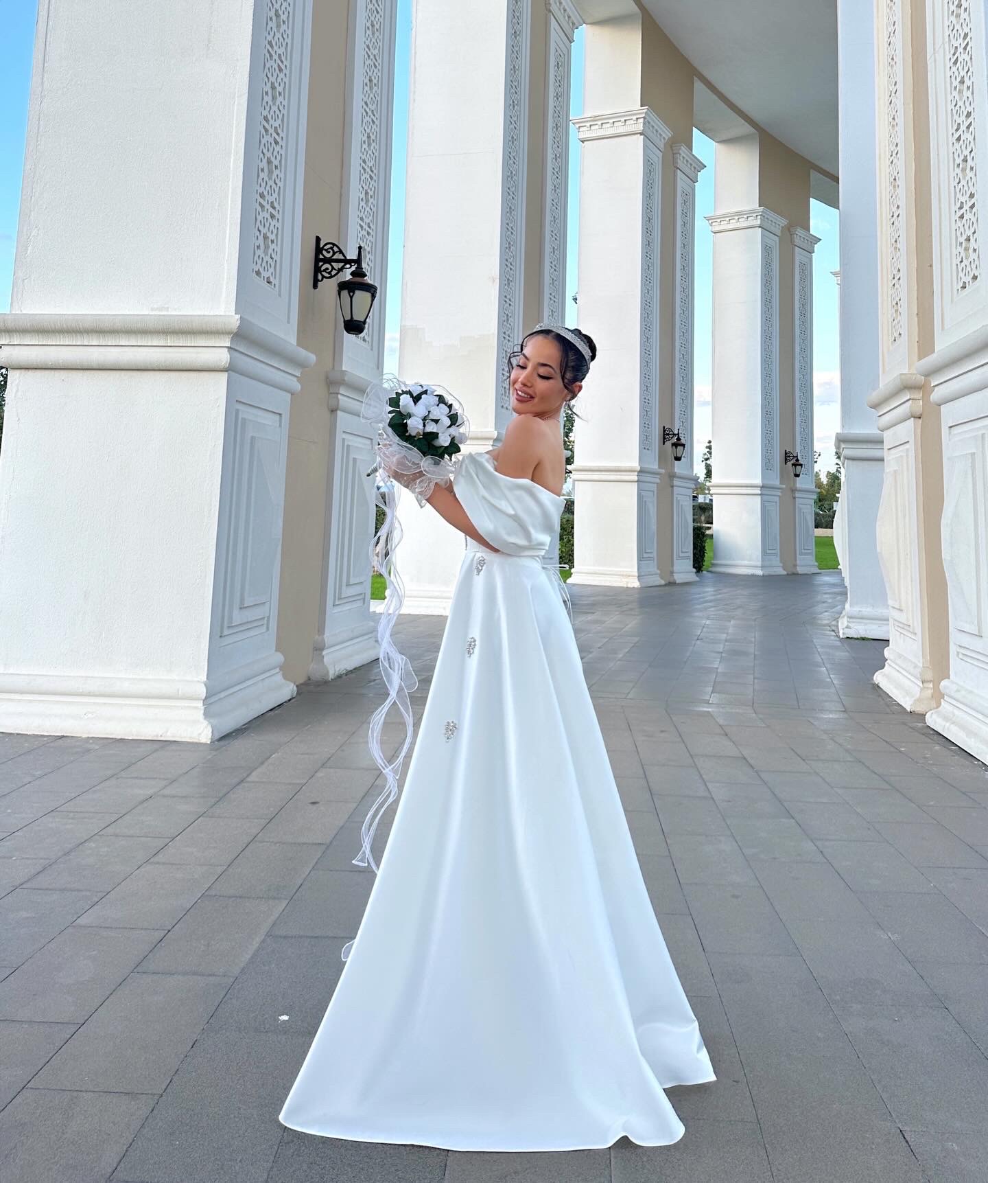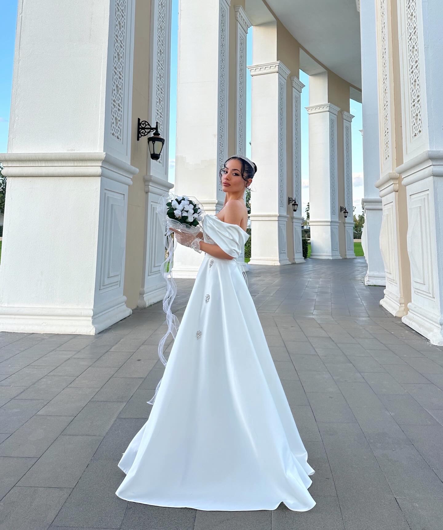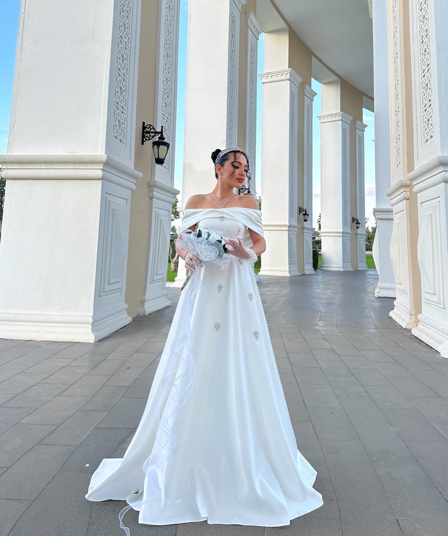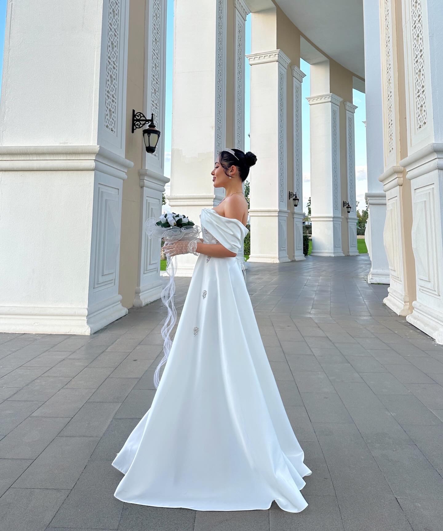 BEYAZ SATEN MALEFİZ TAŞLI ABİYE