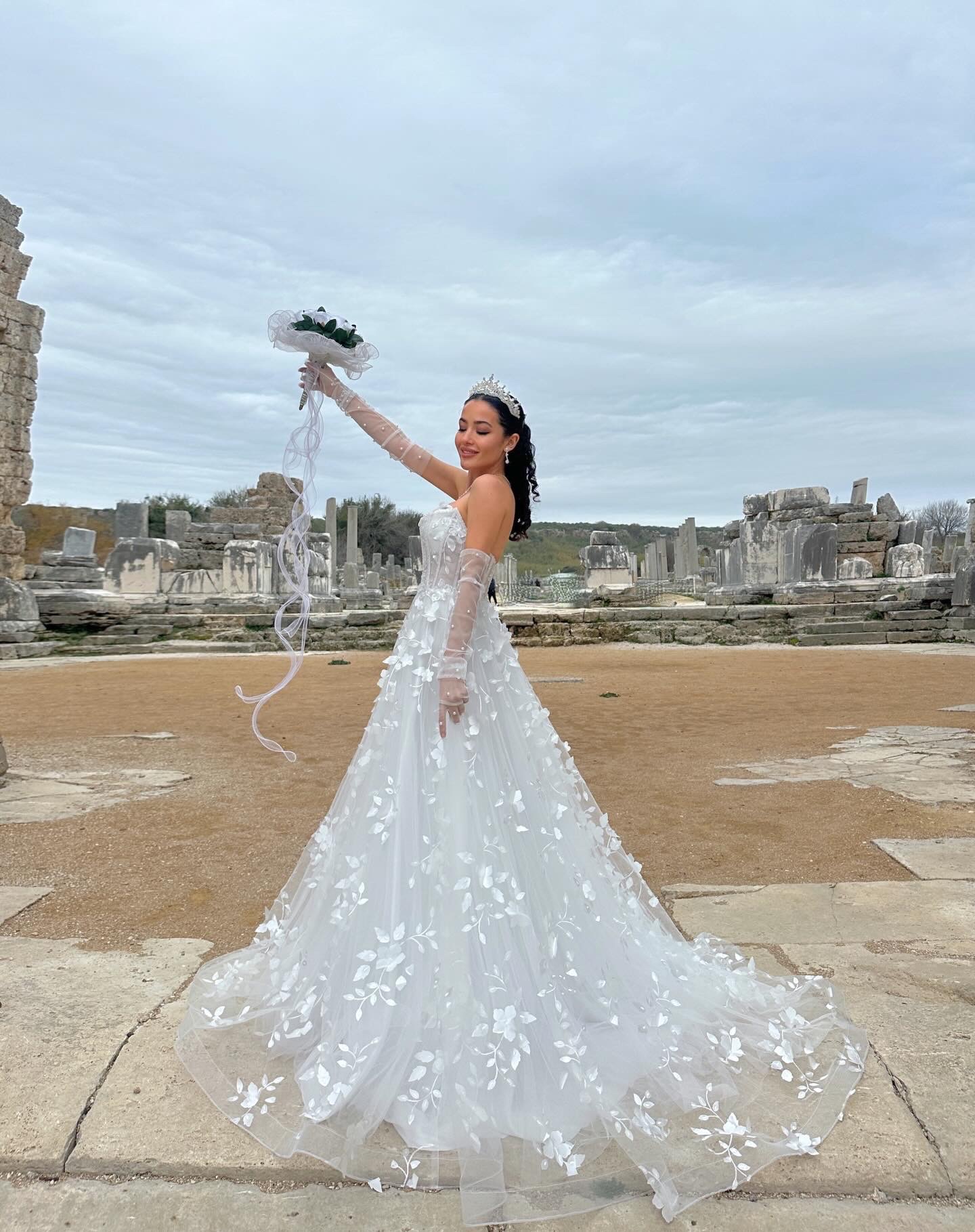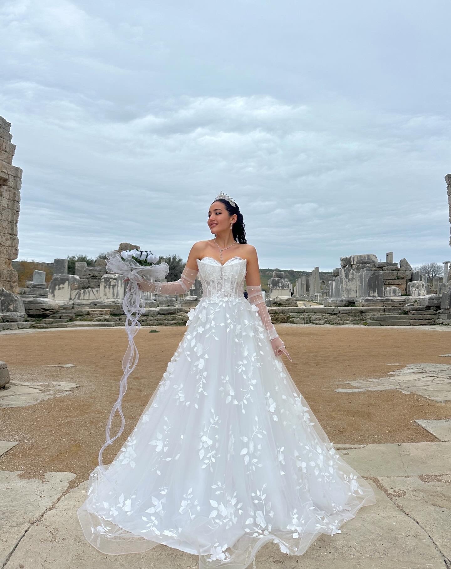 BEYAZ VİCTORİA TASARIM TAŞLI ABİYE