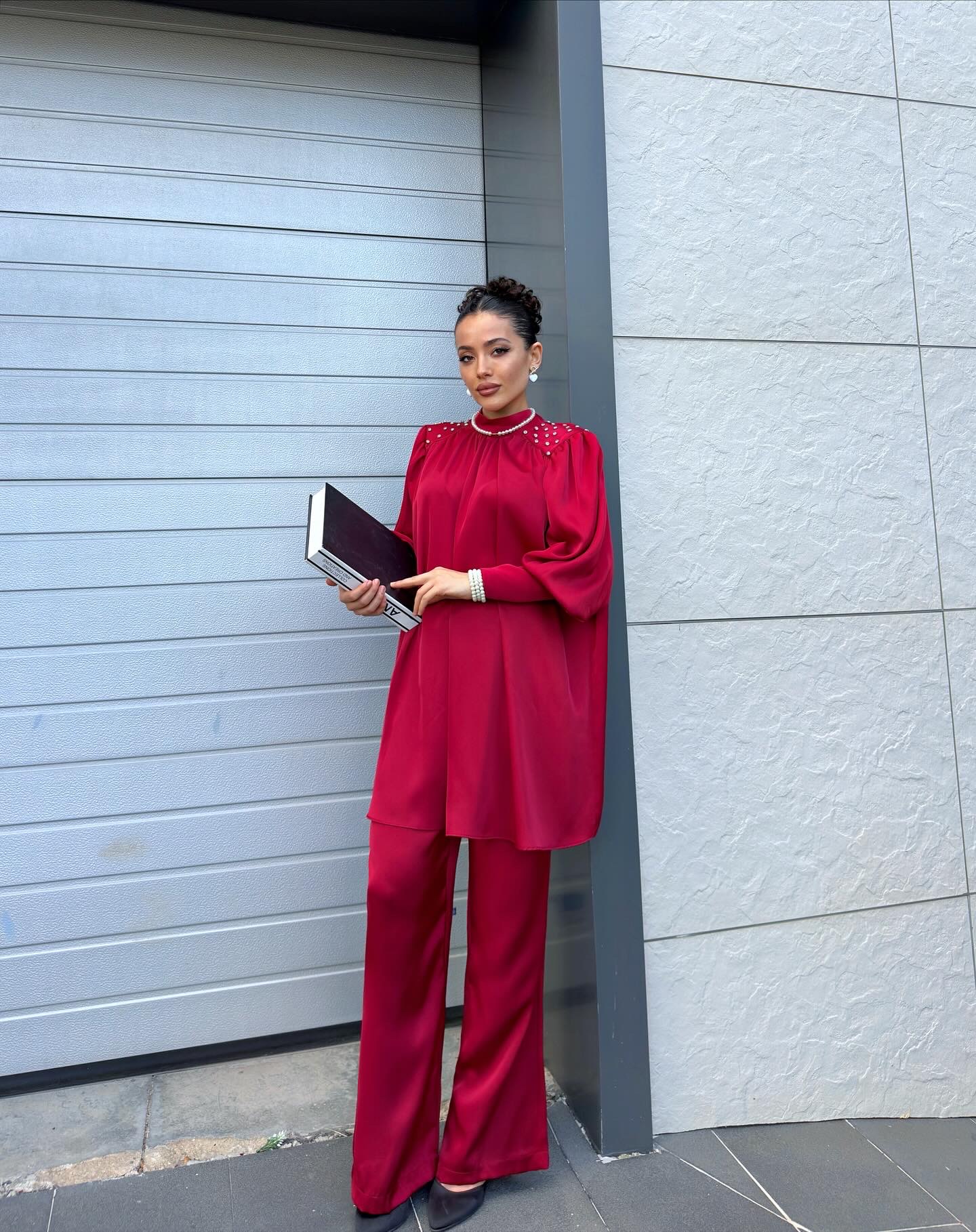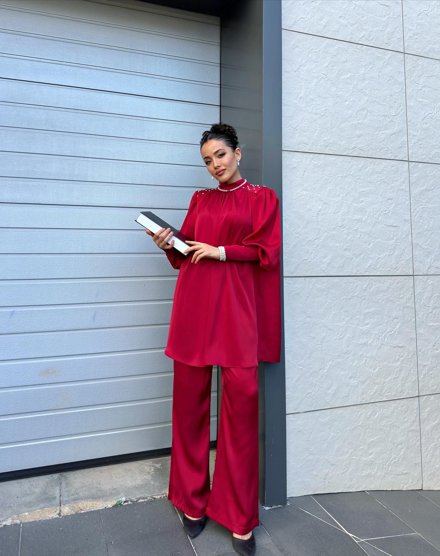 BORDO SATEN ABİYE TAKIM