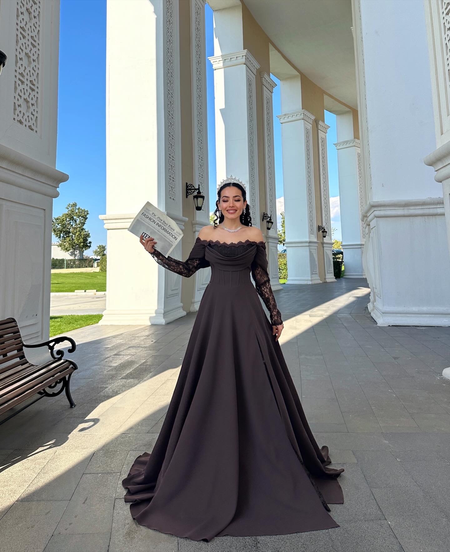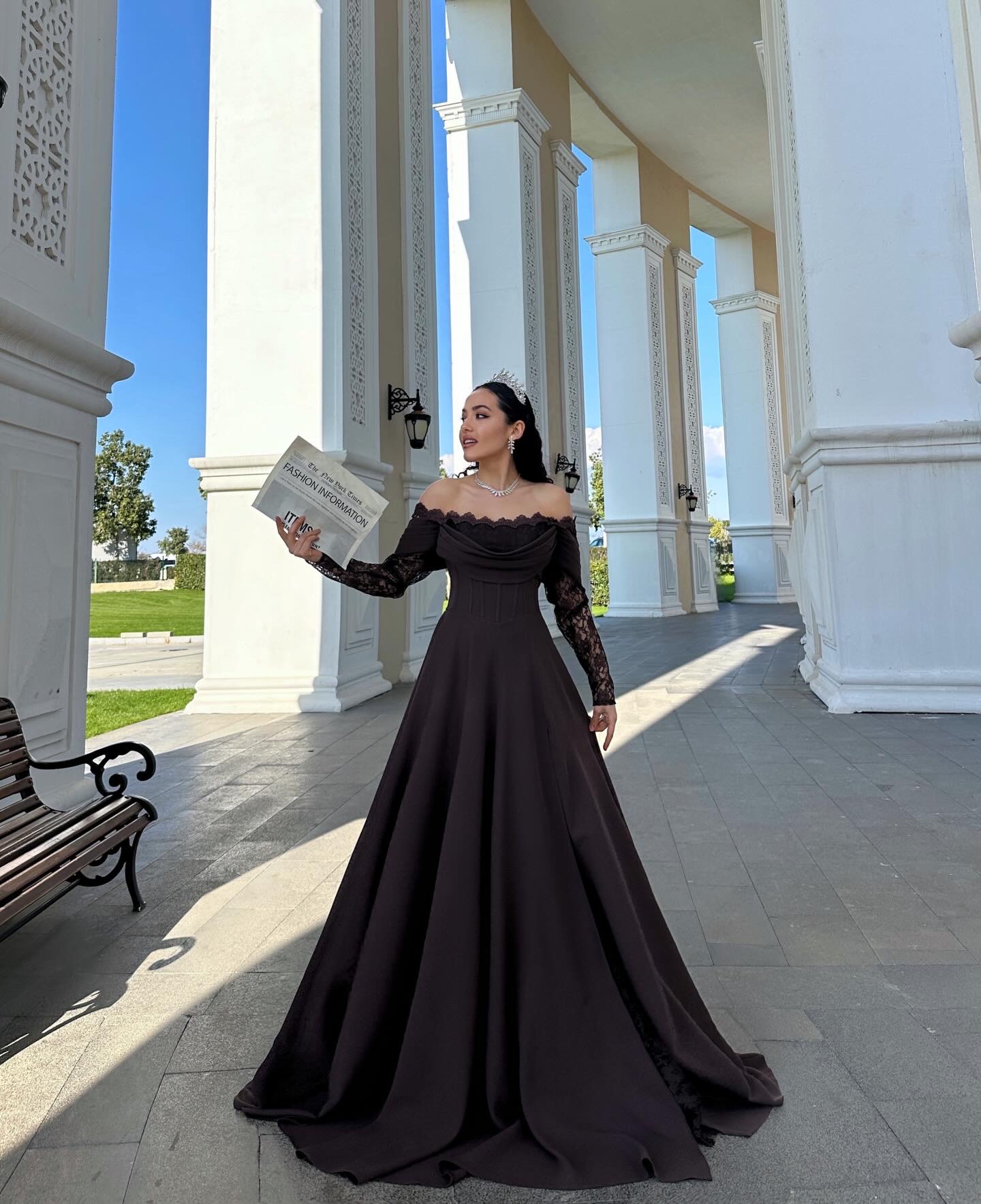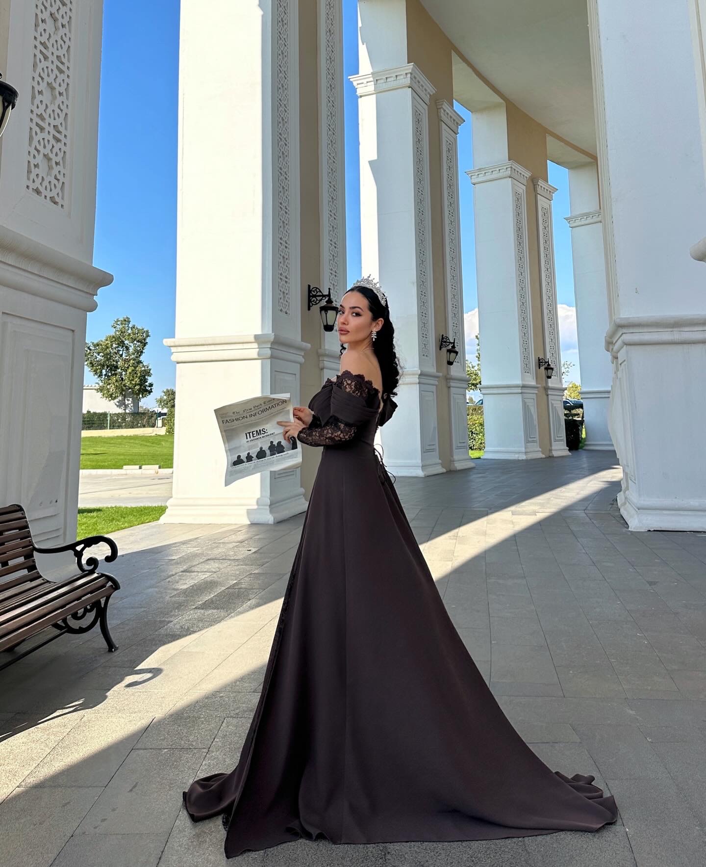 KAHVERENGİ DANTELLİ TASARIM ROSA ABİYE