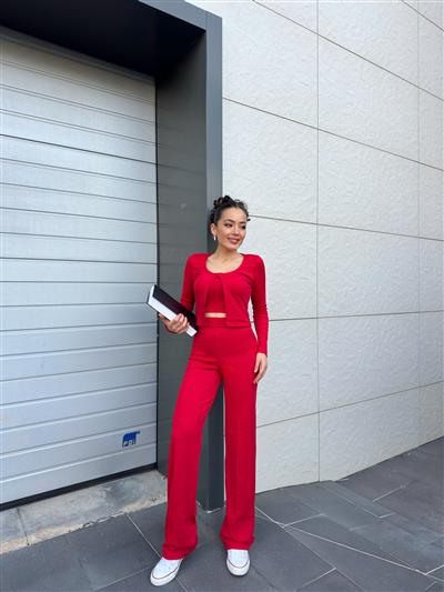 KIRMIZI PAMUKLU ÜÇLÜ TAKIM