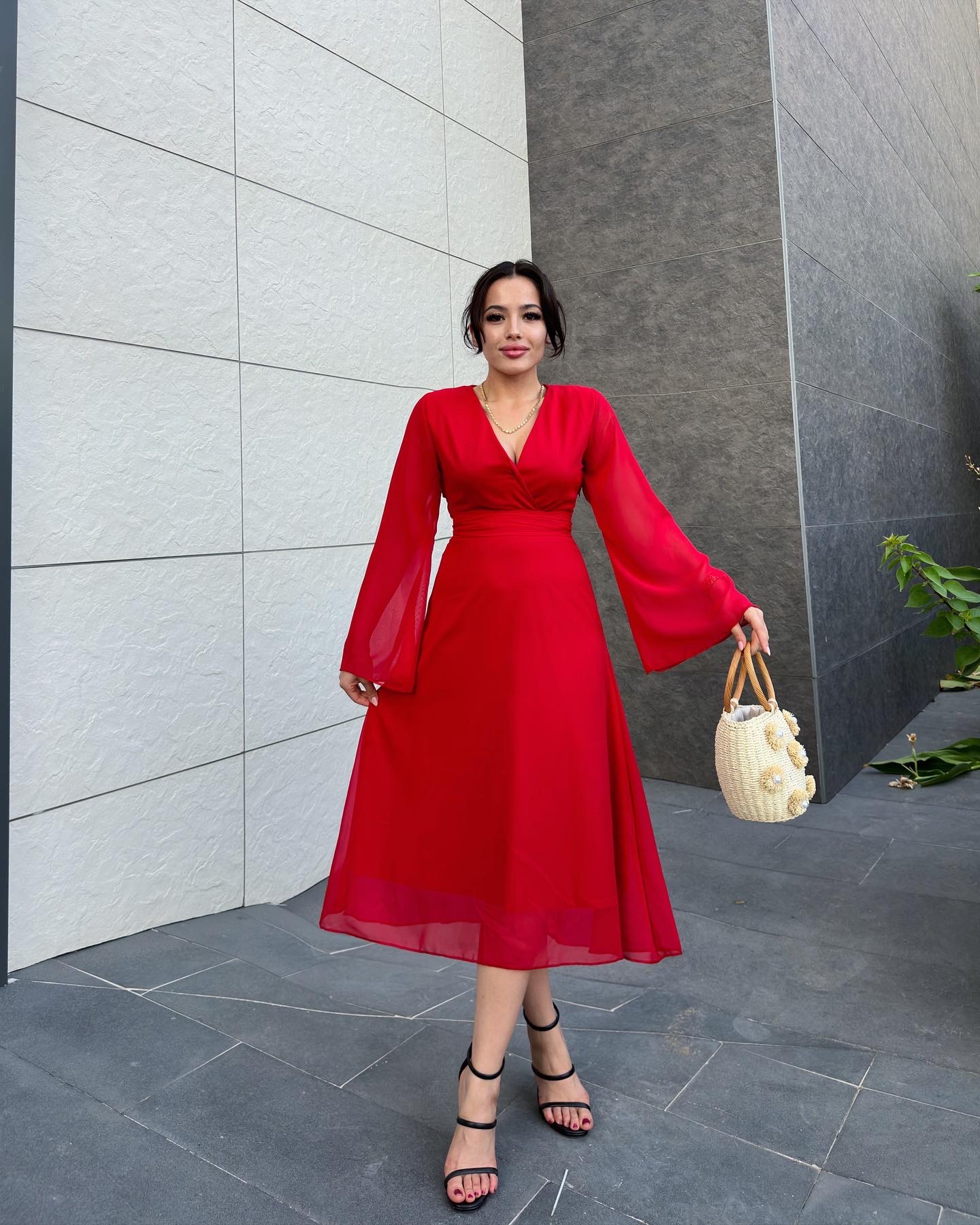 Kırmızı Şifon Elbise