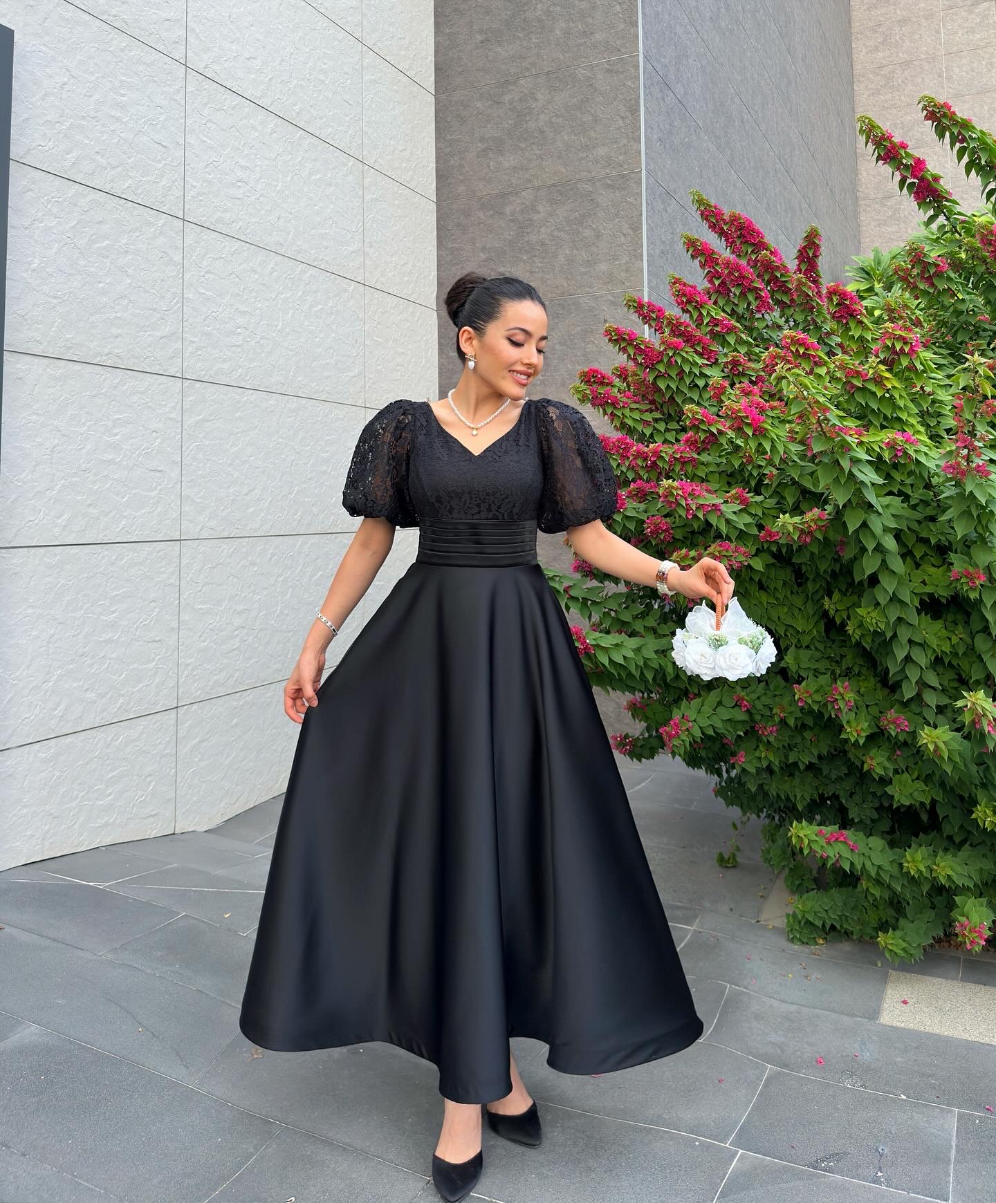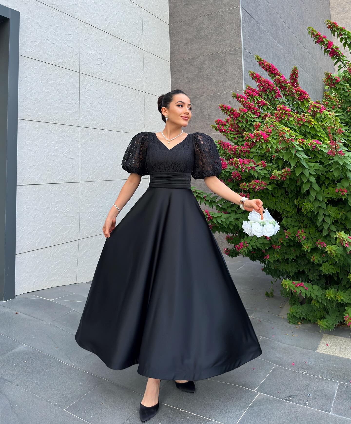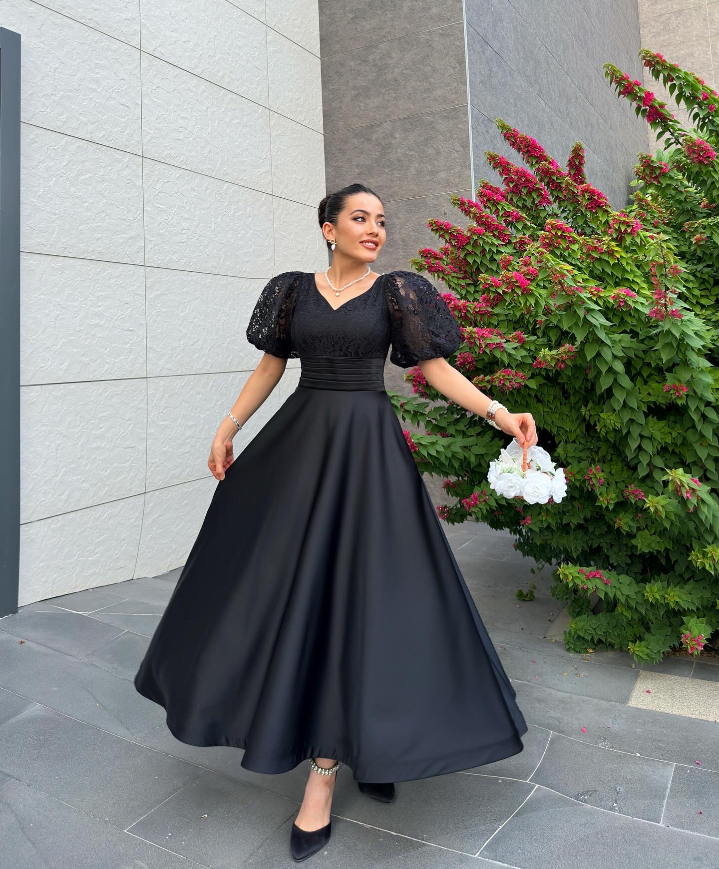 SİYAH SATEN DANTELLİ TASARIM ABİYE