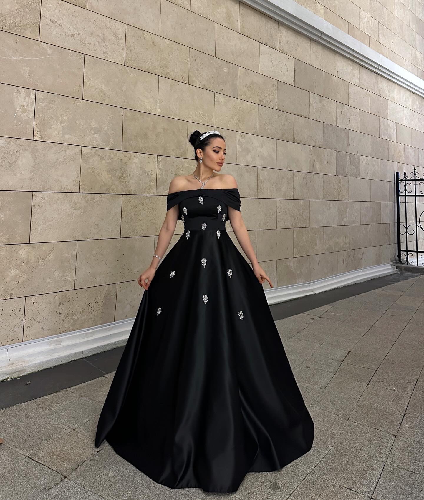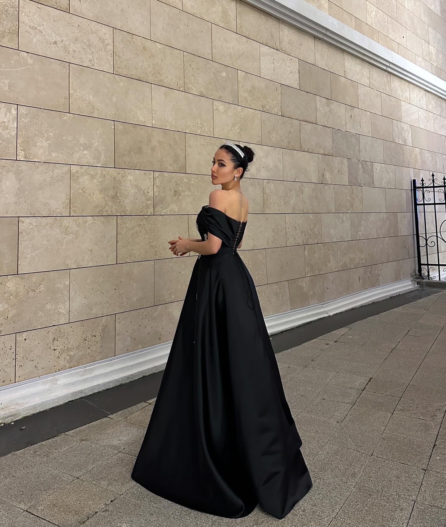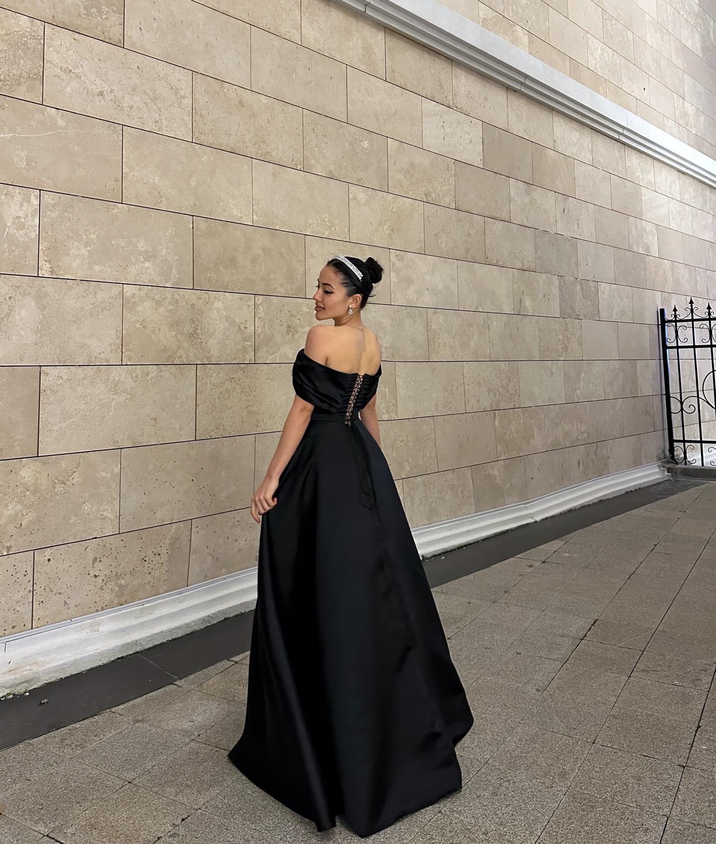SİYAH SATEN TAŞ DETAYLI MALEFİZ ABİYE