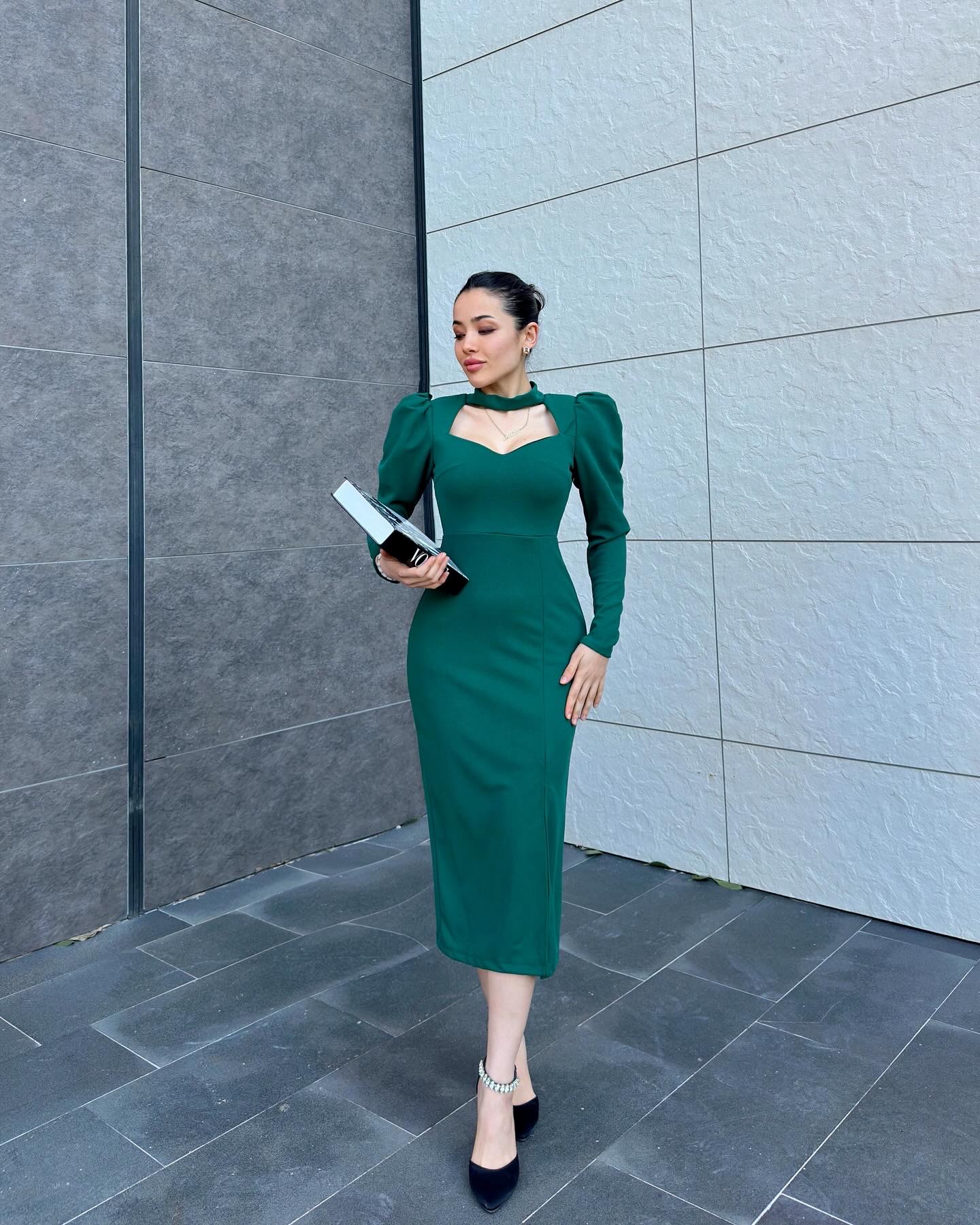ZÜMRÜT YEŞİLİ KALP YAKA ELBİSE